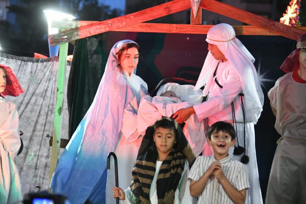 El momento más esperado de la jornada de este lunes fue la representación del pesebre viviente conformado por iglesias de diversos credos de la capital neuquina. Católicos, evangélicos y otras denominaciones cristianas se unieron en un mensaje de paz y fraternidad.