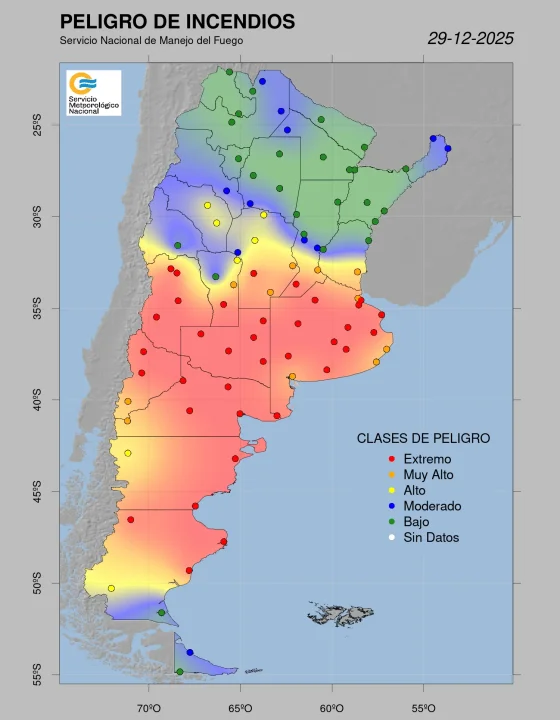 NEUQUÉN (NA) – El Servicio Meteorológico Nacional (SMN) informó que hay riesgo “extremo” por incendios forestales en Neuquén y otras nueve provincias más. Las autoridades solicitan que se apliquen todas las medidas para evitar la propagación del fuego.