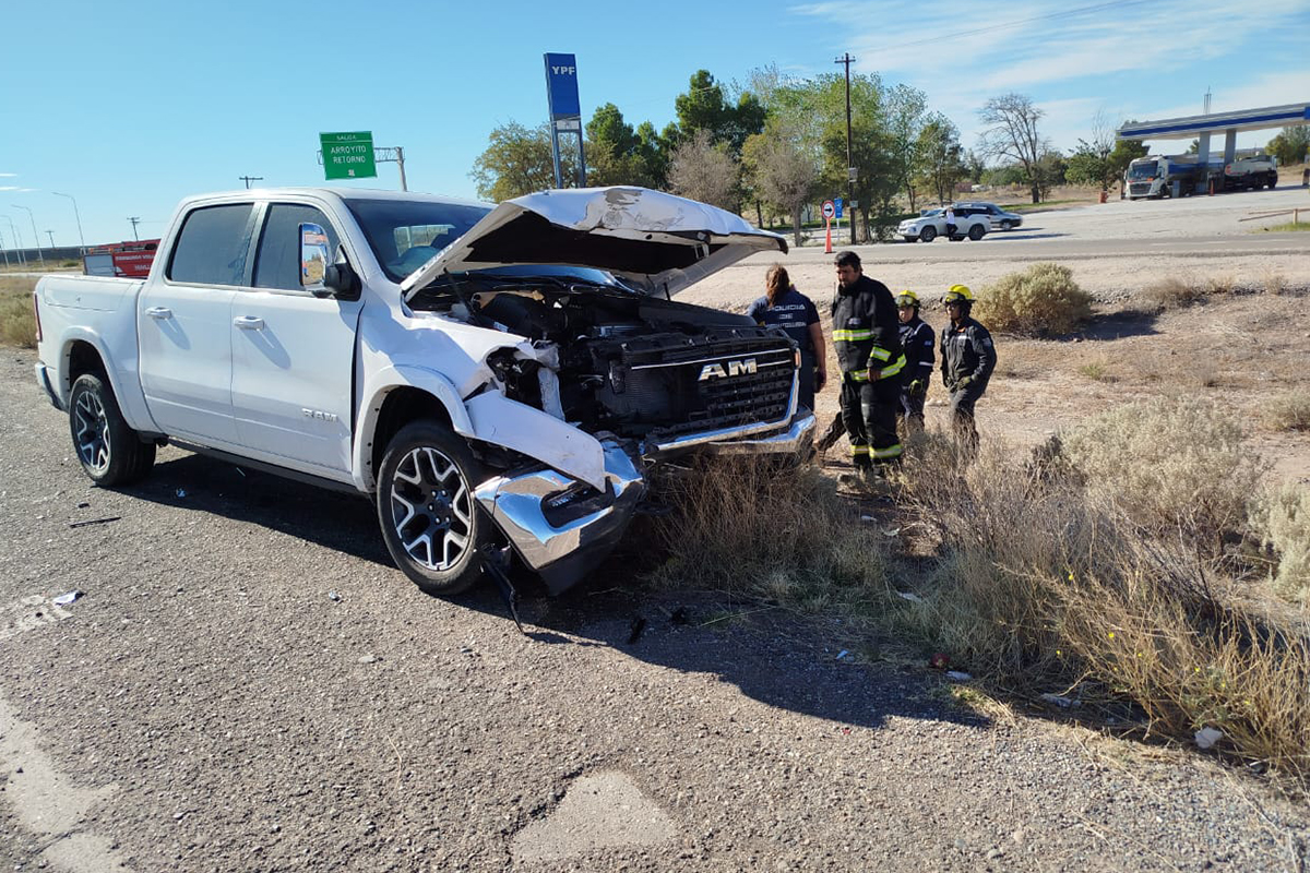 “Un vehículo que venía desde Senillosa hacia Arroyito, de imprevisto gira para cruzar la ruta y meterse a la estación de servicio y atrás venía la RAM”, indicó.