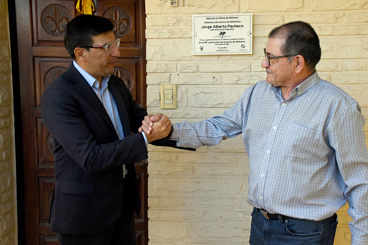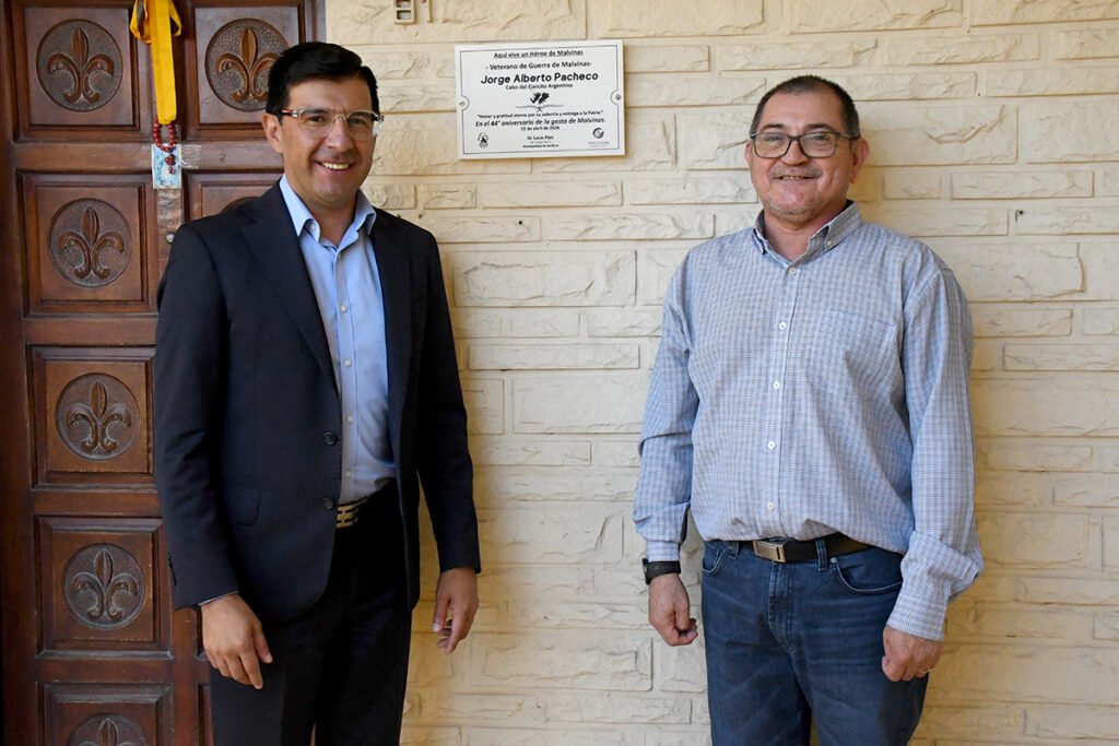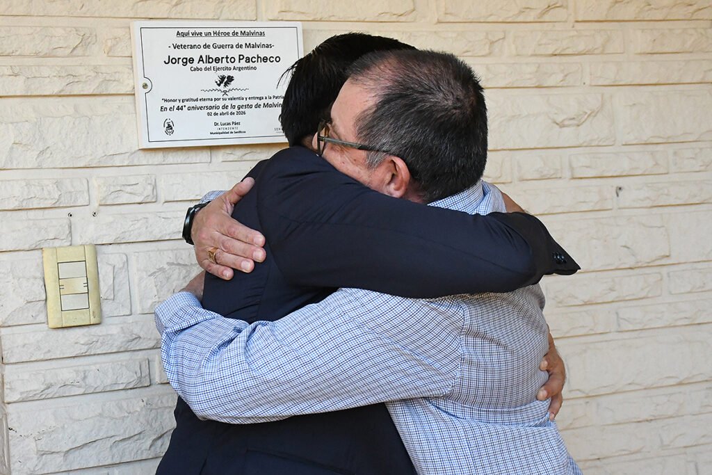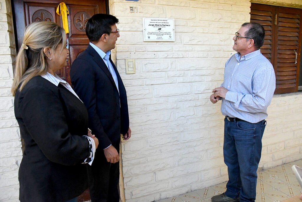 Este año, Jorge Alberto Pacheco no pudo estar para la entrega de reconocimientos que se hizo a los familiares y veteranos durante el acto oficial de la ciudad, pero este viernes recibió una placa en su domicilio, con la leyenda “Aquí vive un Héroe de Malvinas.