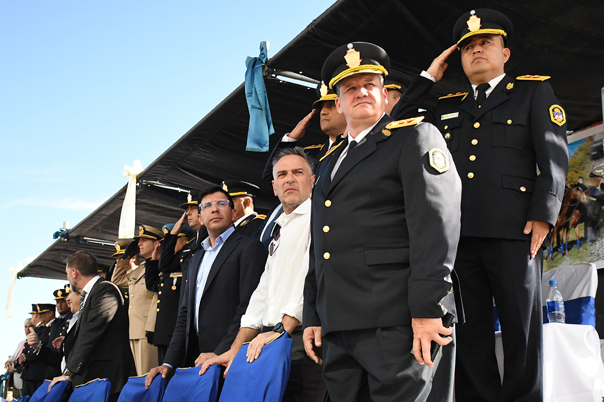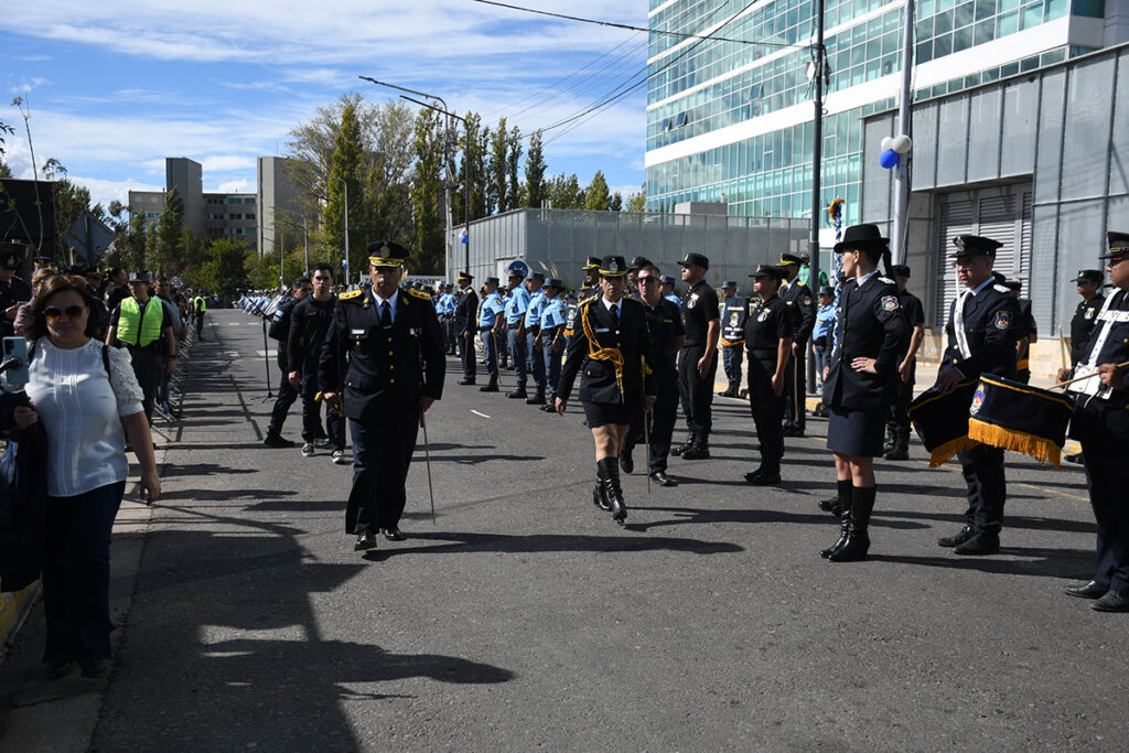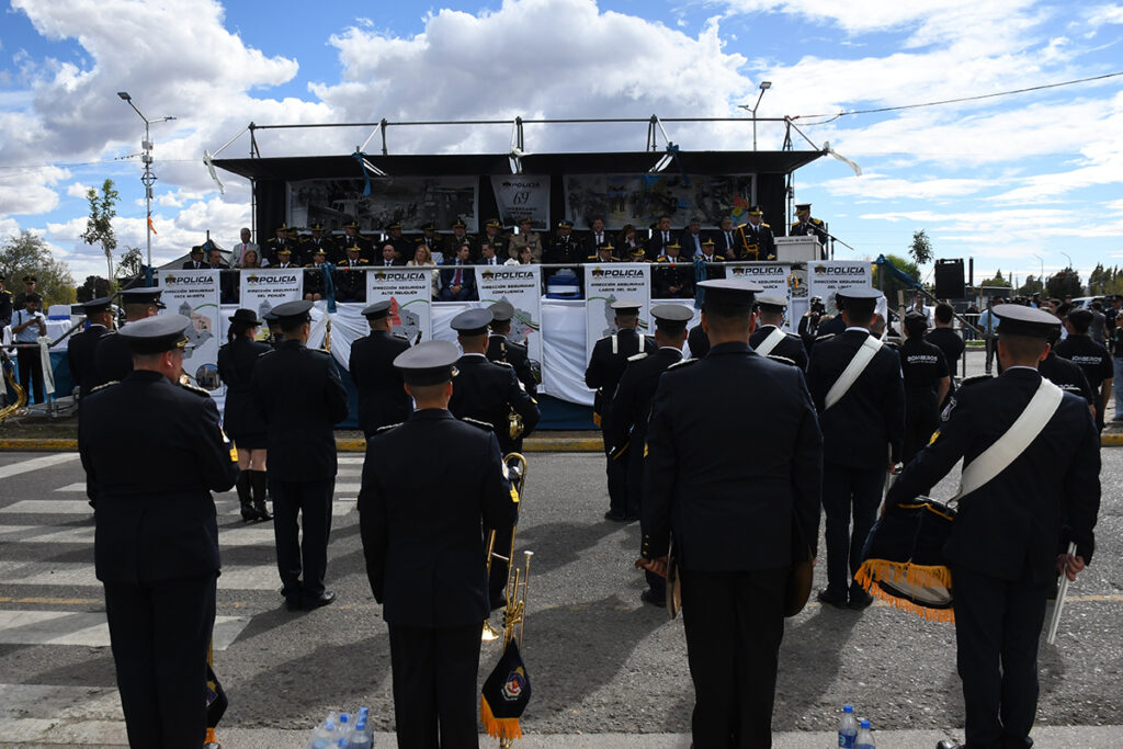 Durante la ceremonia se rindió homenaje a la labor diaria de la fuerza policial, destacando su compromiso permanente con la seguridad de los neuquinos.